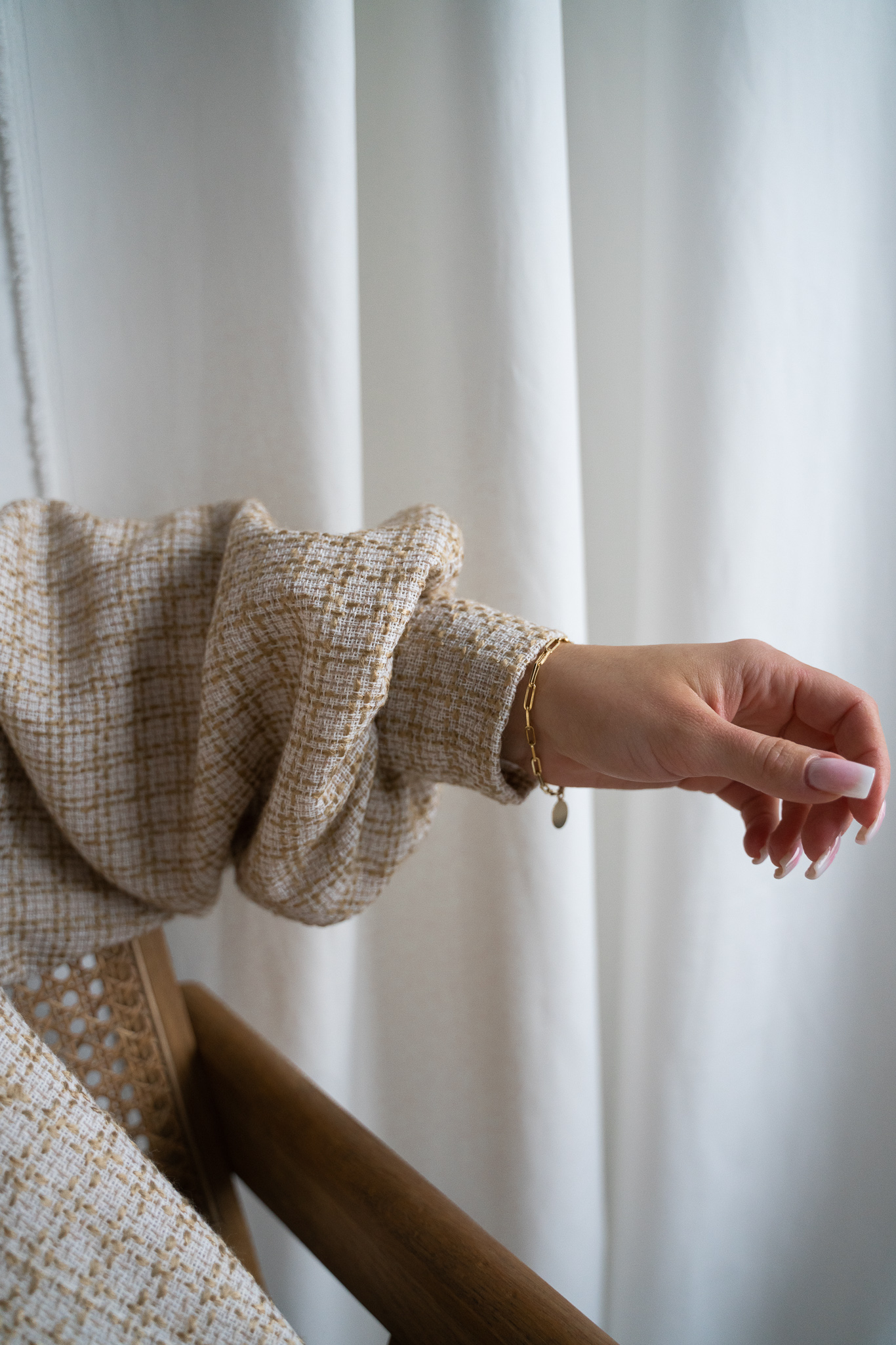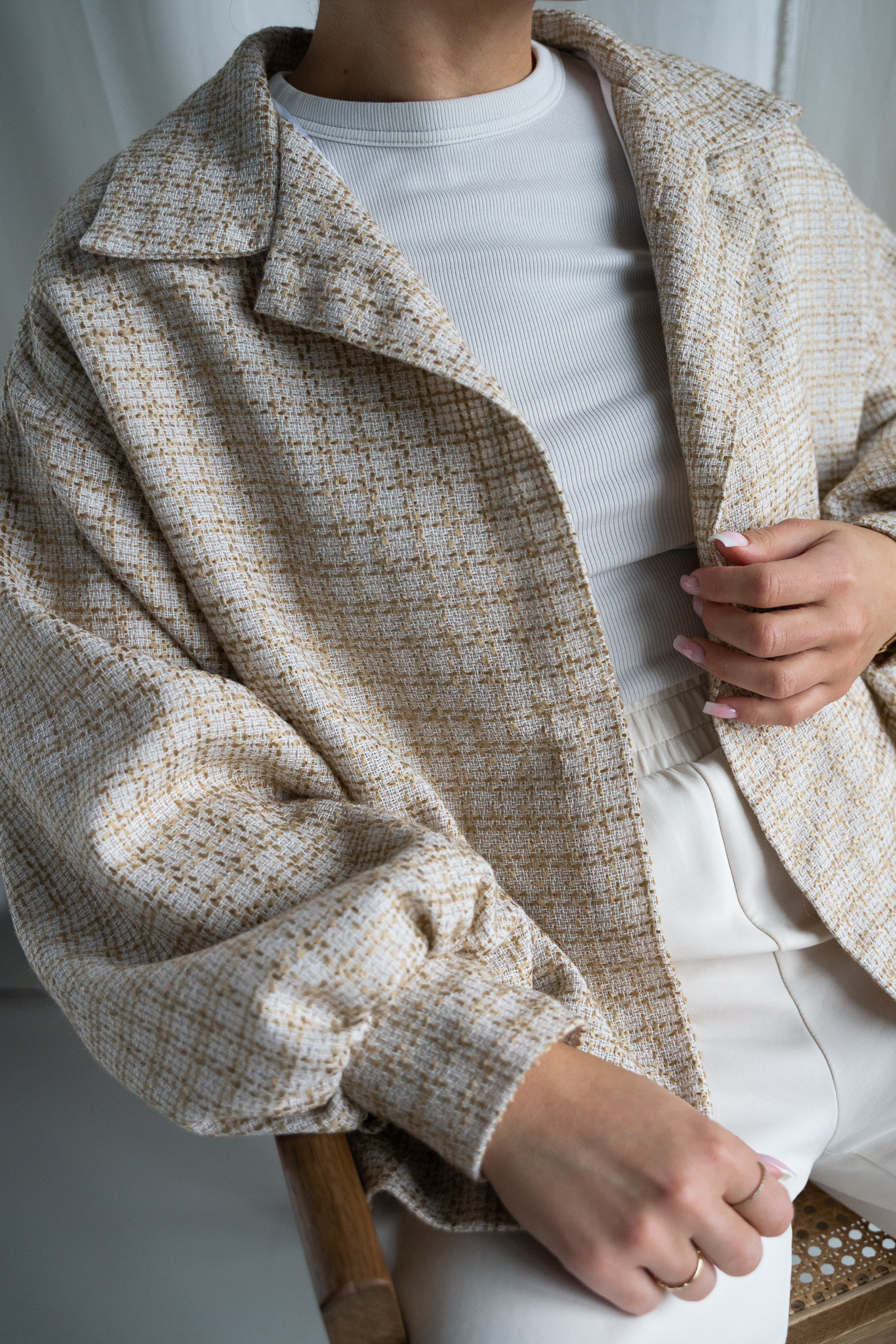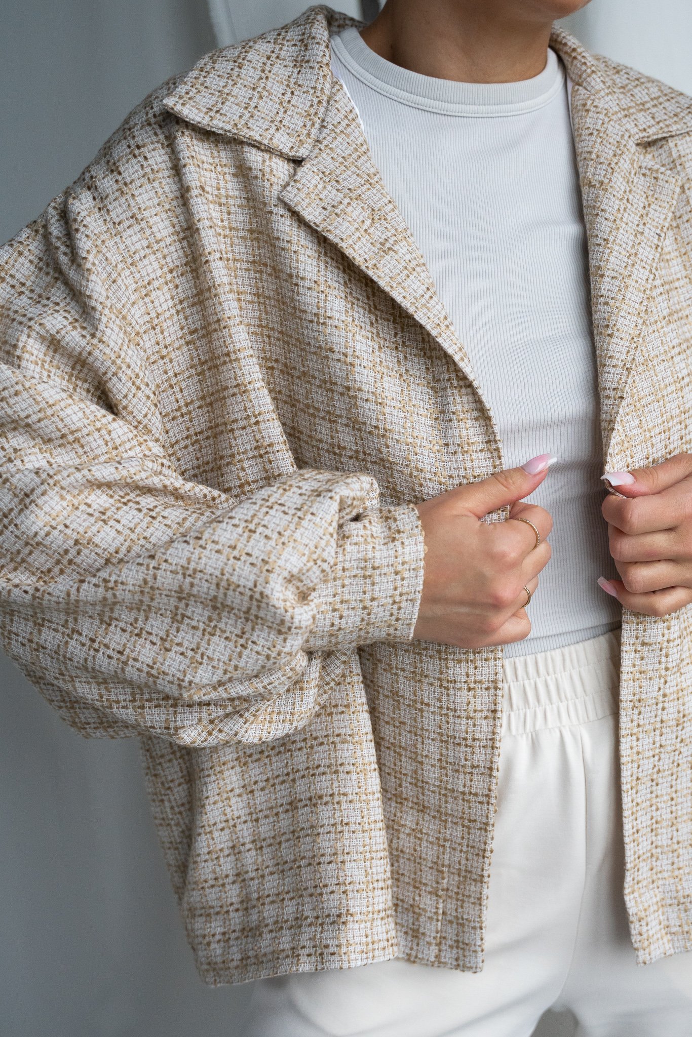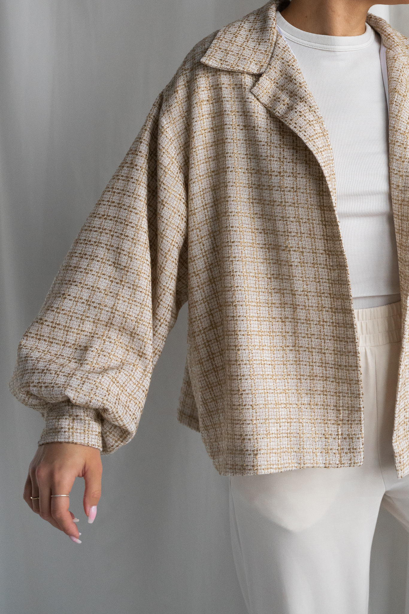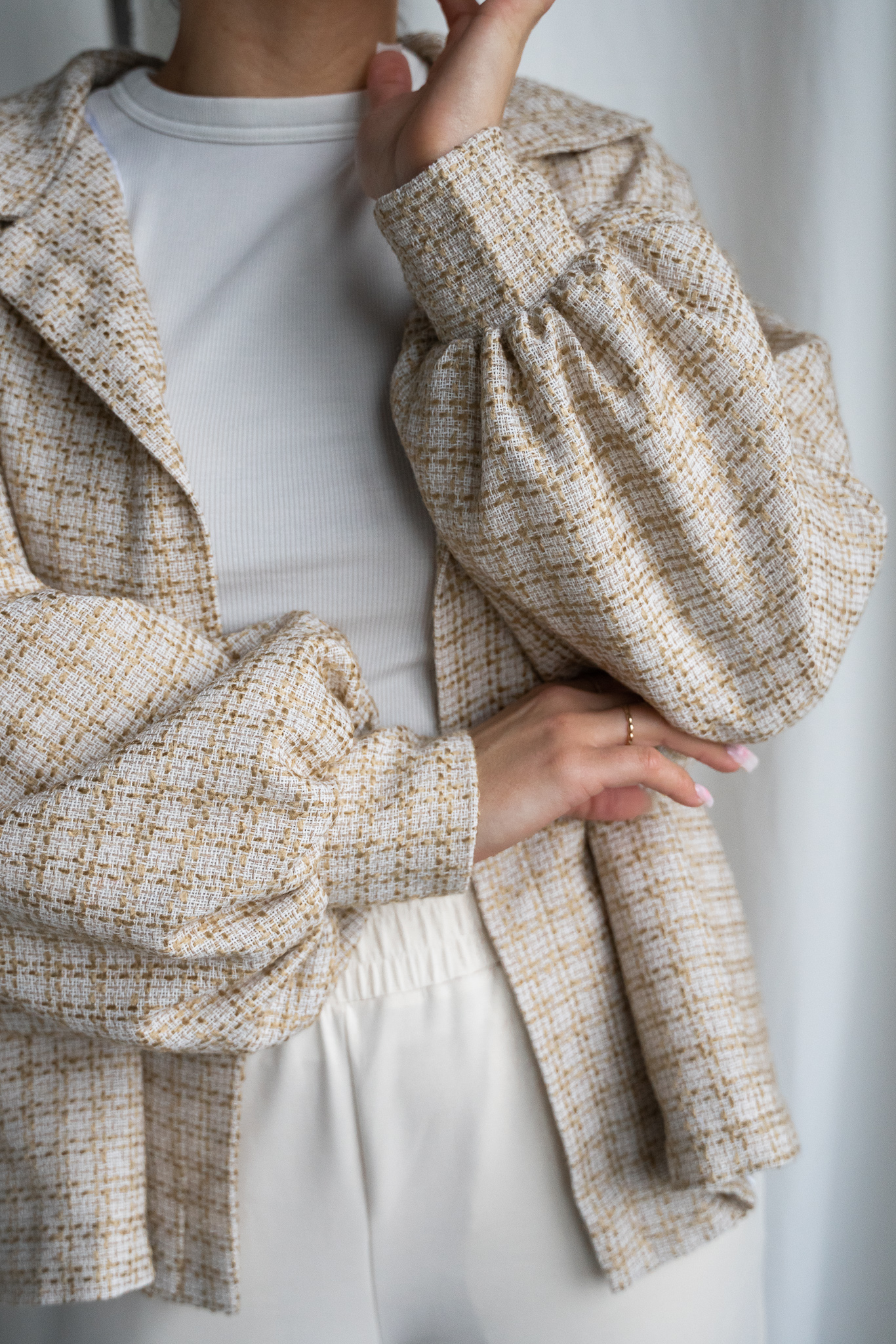 Detal w postaci marszczeń przy rękawach