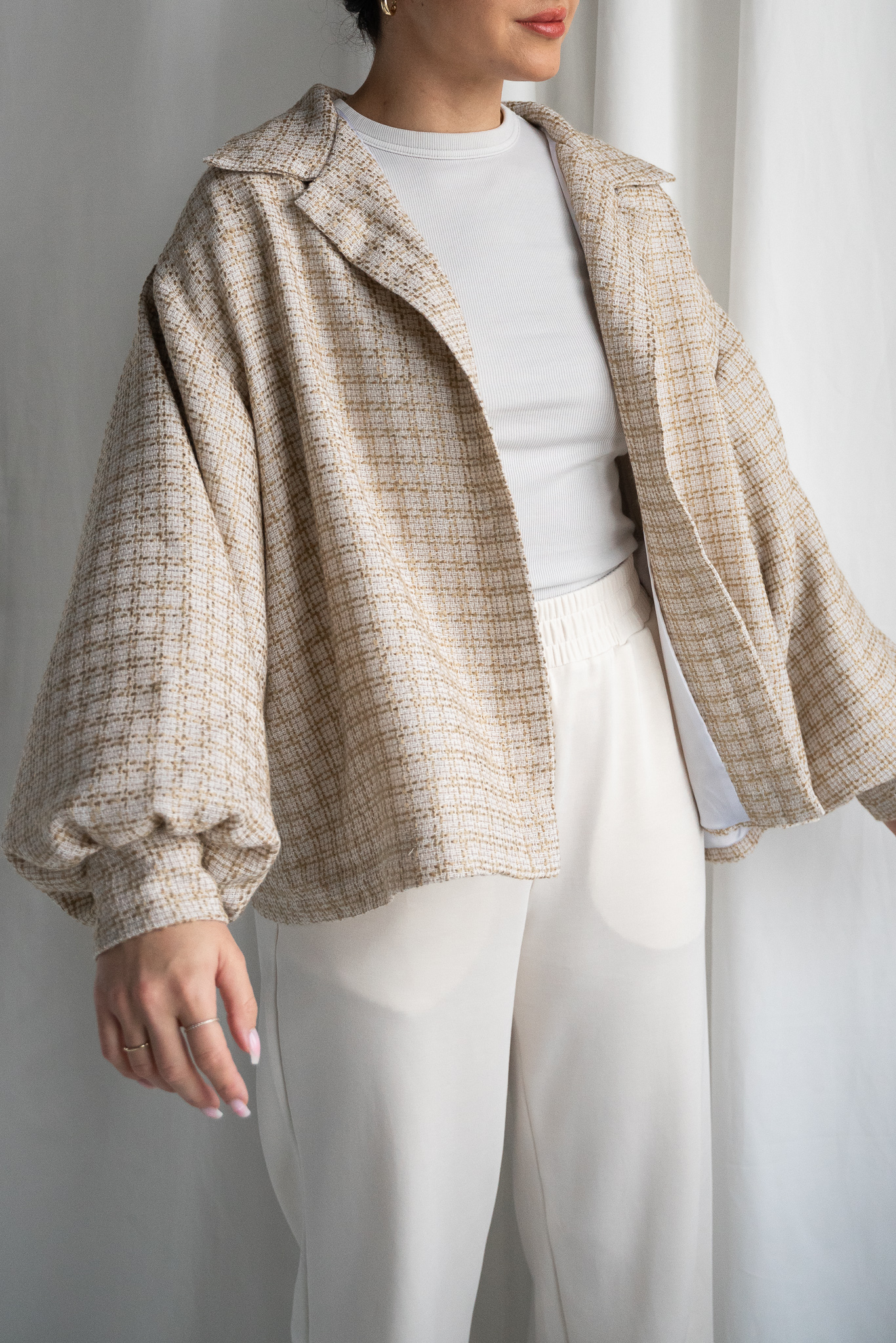 Dopracowana w każdym calu. Odszyta z wysokiej jakości wełny i kaszmiru. Luźny krój pozwala skompletować ją z ulubioną bluzą lub t-shirtem. Dzięki obniżonej linii ramienia ta kurtka sprawdzi się idealnie w codziennym jak i sportowym zestawieniu. Klasyczny kołnierzyk i bufiaste rękawy wyróżniają ten model na tle klasycznych kurtek.