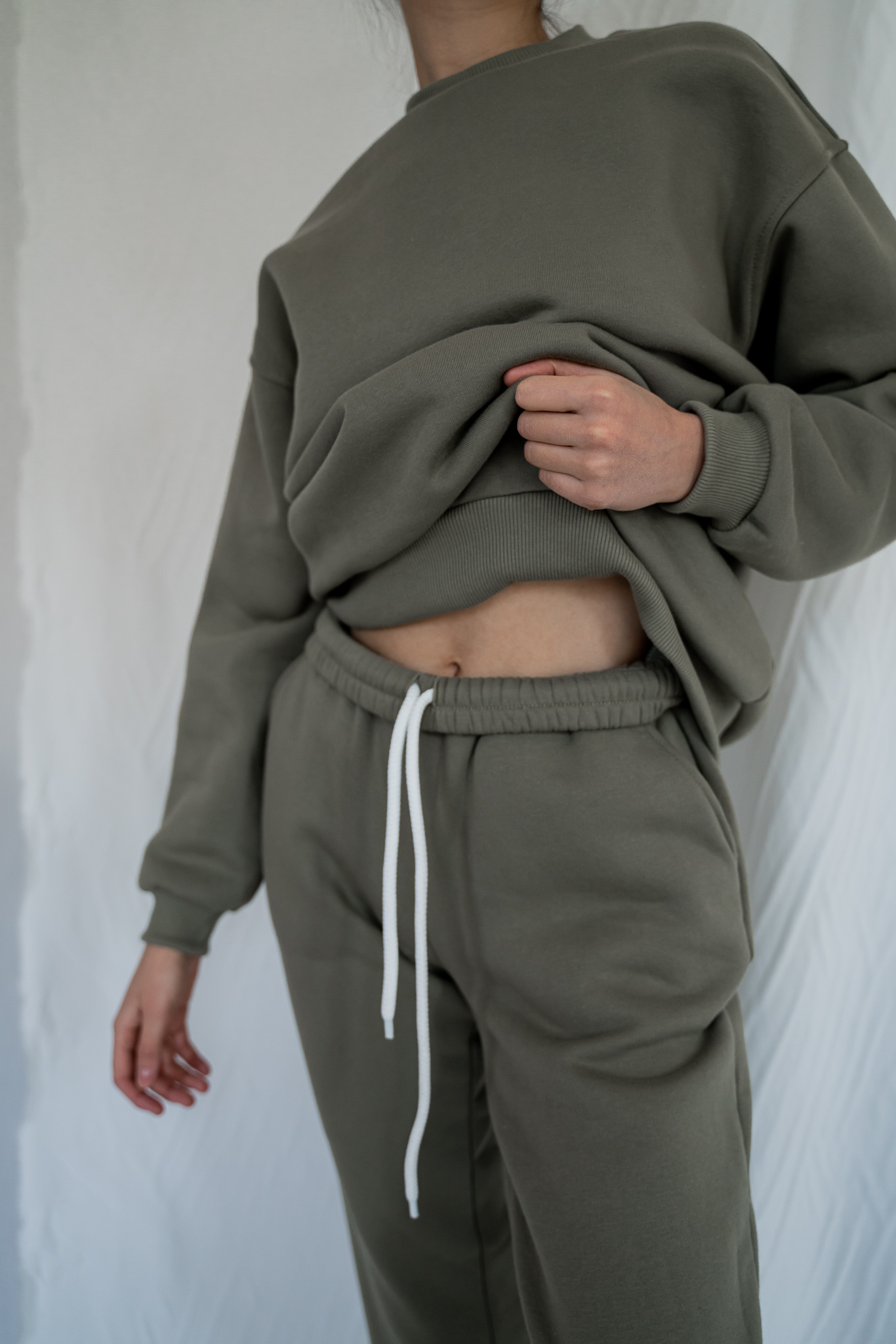 •Spodnie Navy to ponadczasowy klasyk w oliwkowym kolorze. Przyjemnie otulają i zapewniają poczucie komfortu. Luźny krój, idealnie sprawdzi się przez cały rok. Swobodny fason z wygodnym ściagaczem ukrytym wewnątrz, pozwala dowolnie regulować talie. Ubierz je na aktywny spacer lub do domowego biura.