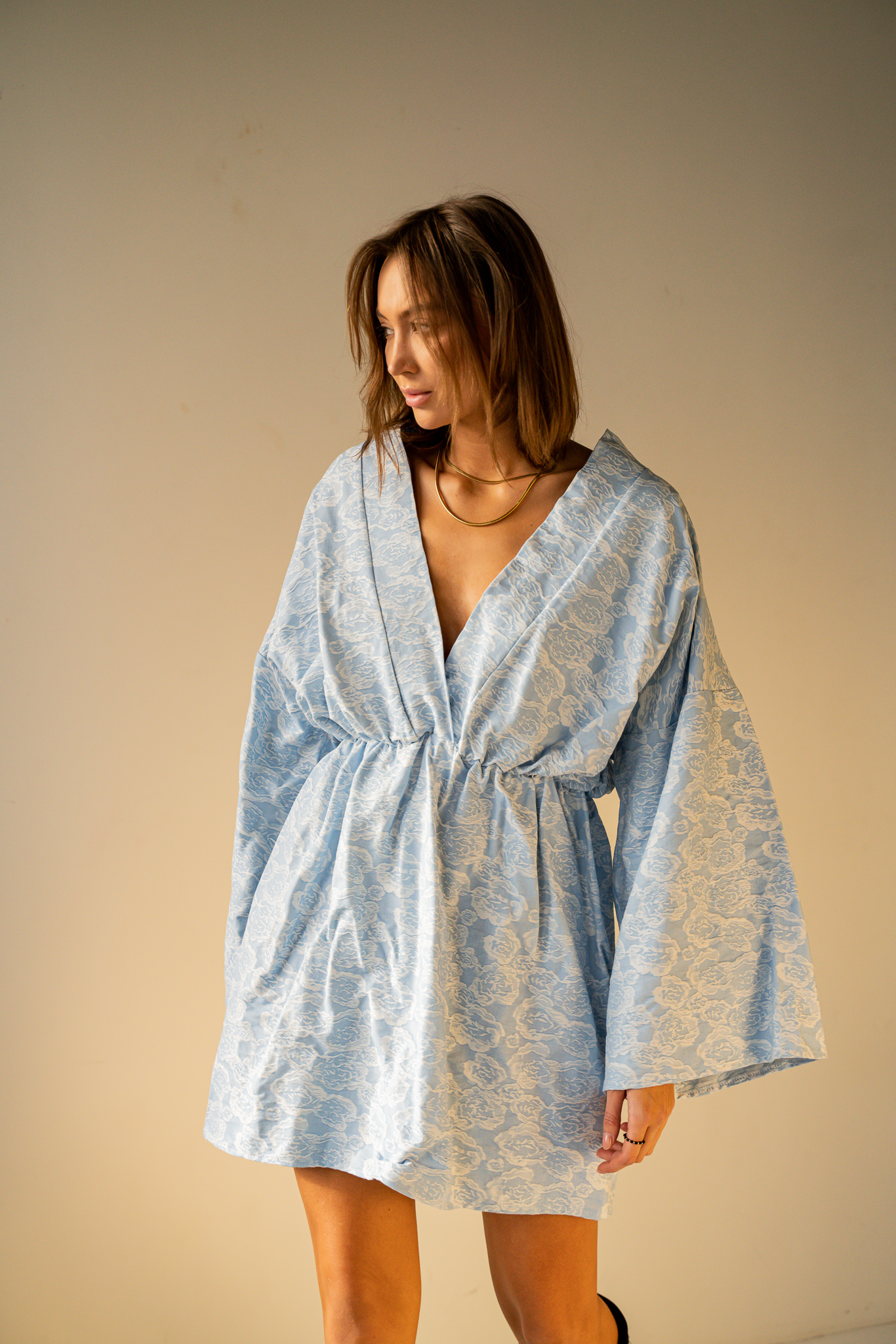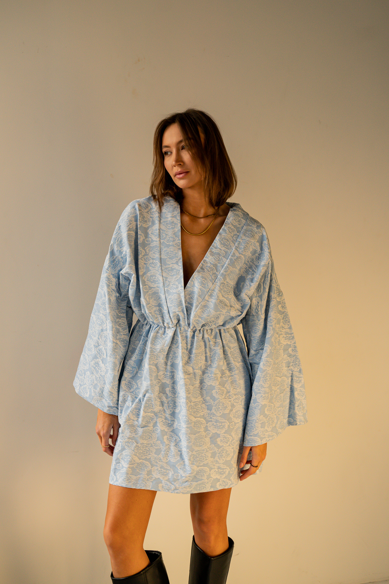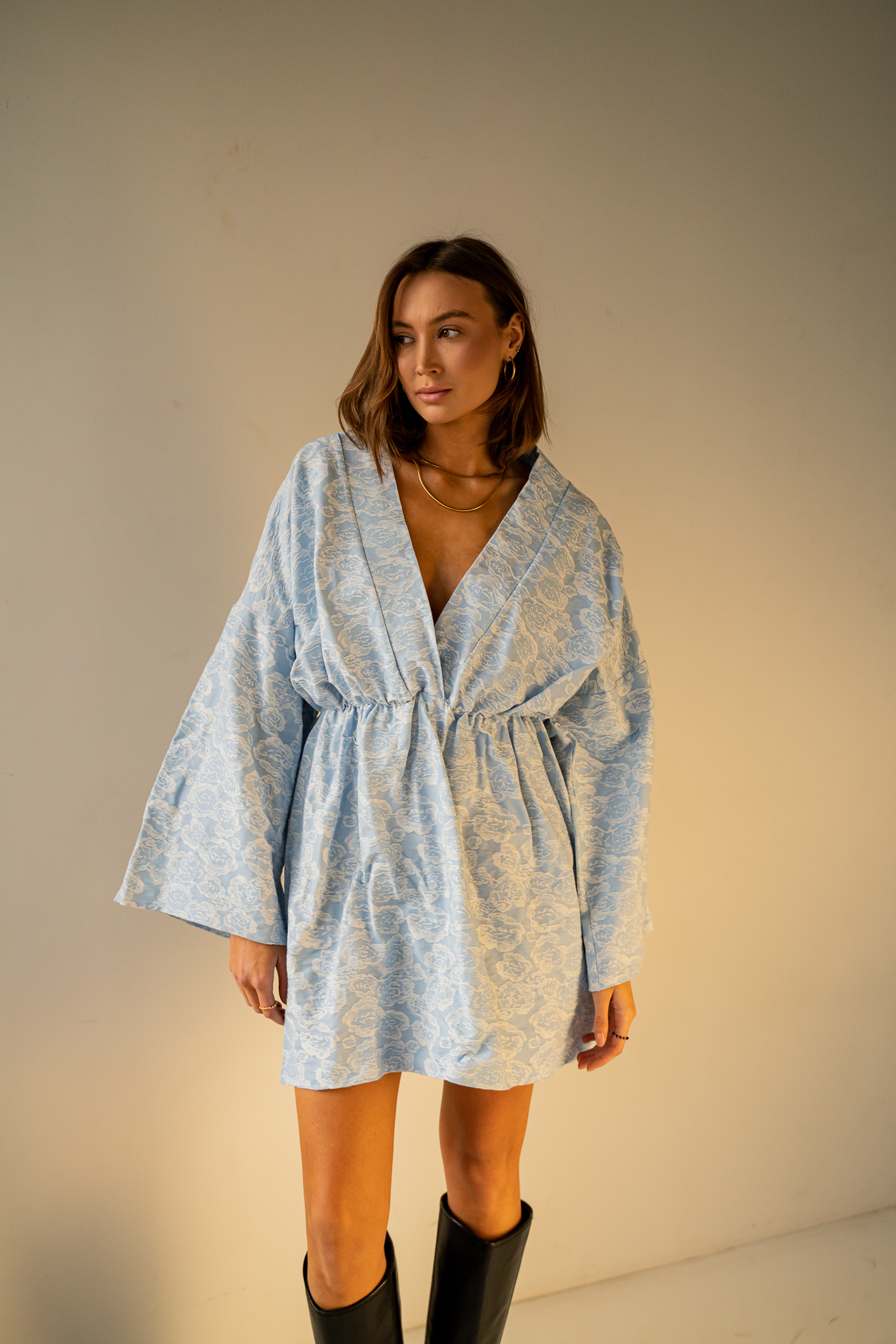 Sukienka SUZI to widowiskowy dekolt w literę V oraz rozkloszowany dół. Swobodny krój i naturalny materiał tworzy harmonijną całość. Dopasowana gumka w pasie, pozwala podkreślić talię. Sukienka świetnie sprawdzi się w upalne dni jak i romantyczne wieczory.